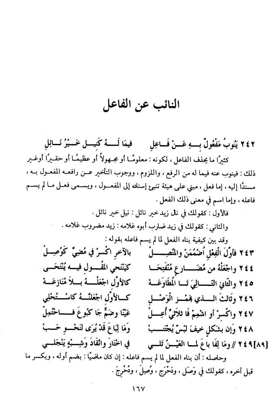 242 - ينوب مفعول به عن فاعل ... فيما له كنيل خير نائل