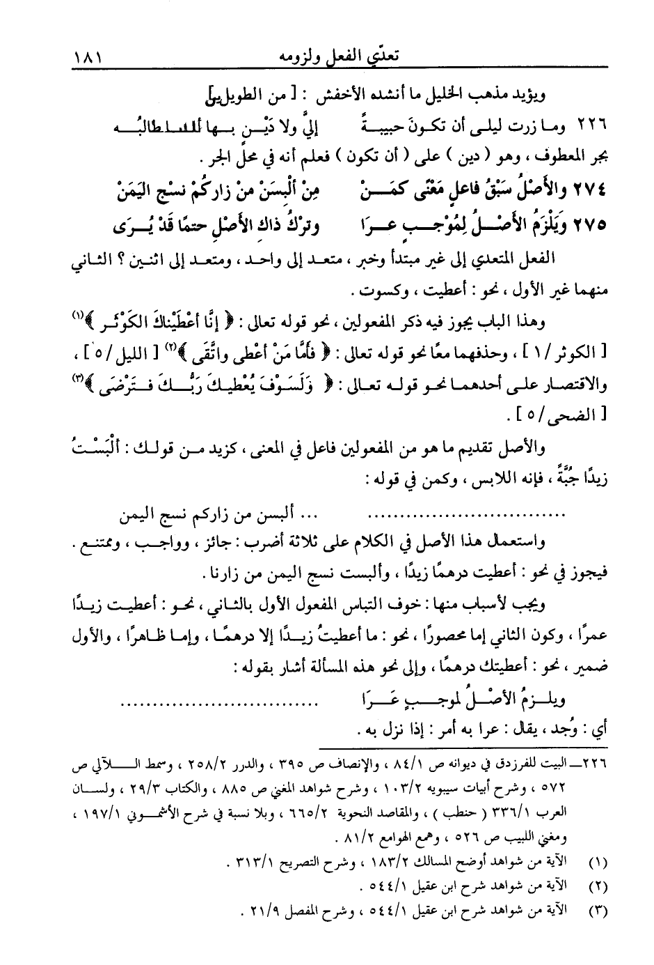 274 - والأصل سبق فاعلٍ معنى كمن ... من ألبسن من زاركم نسج اليمن
