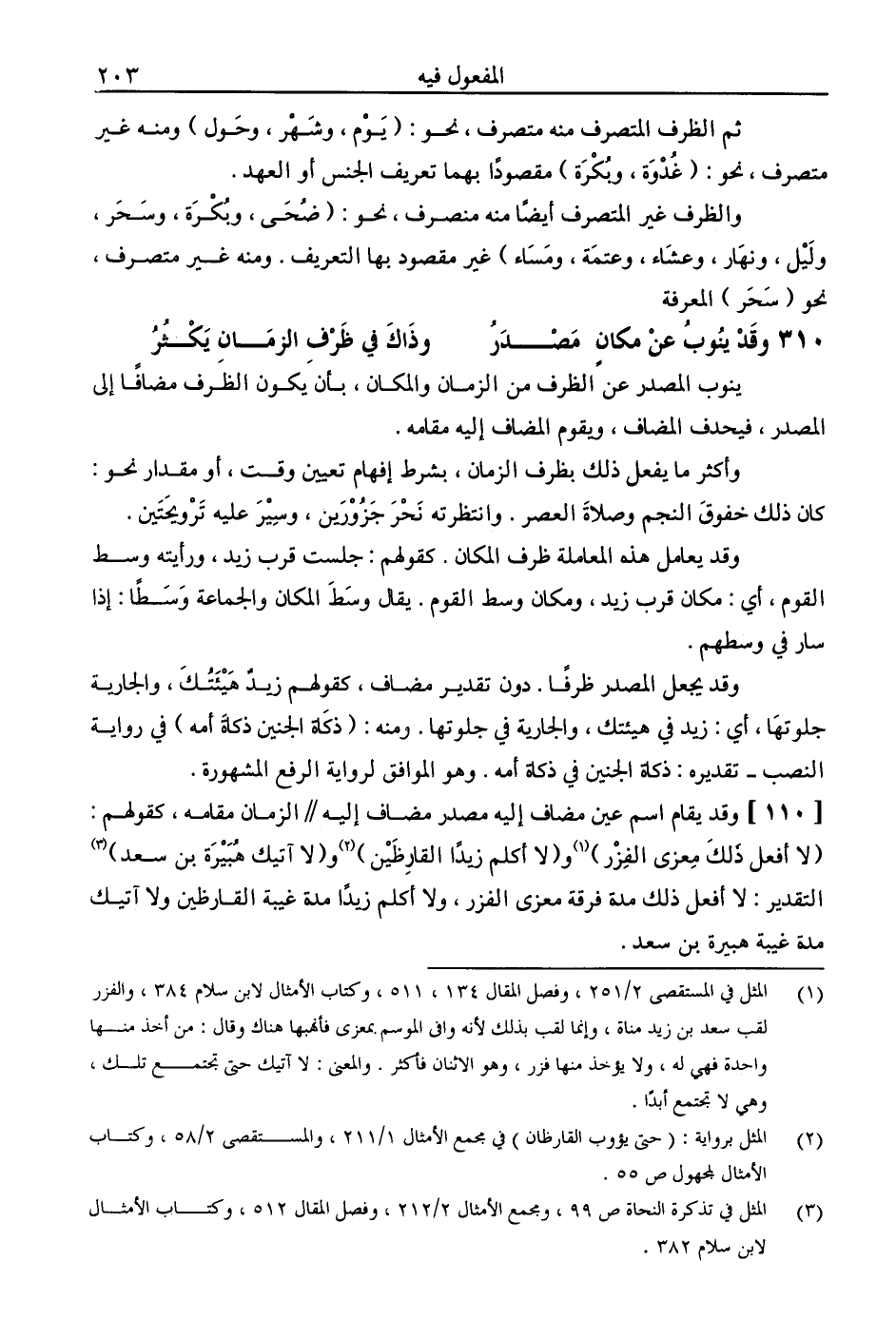 310 - وقد ينوب عن مكانٍ مصدر ... وذاك في ظرف الزمان يكثر