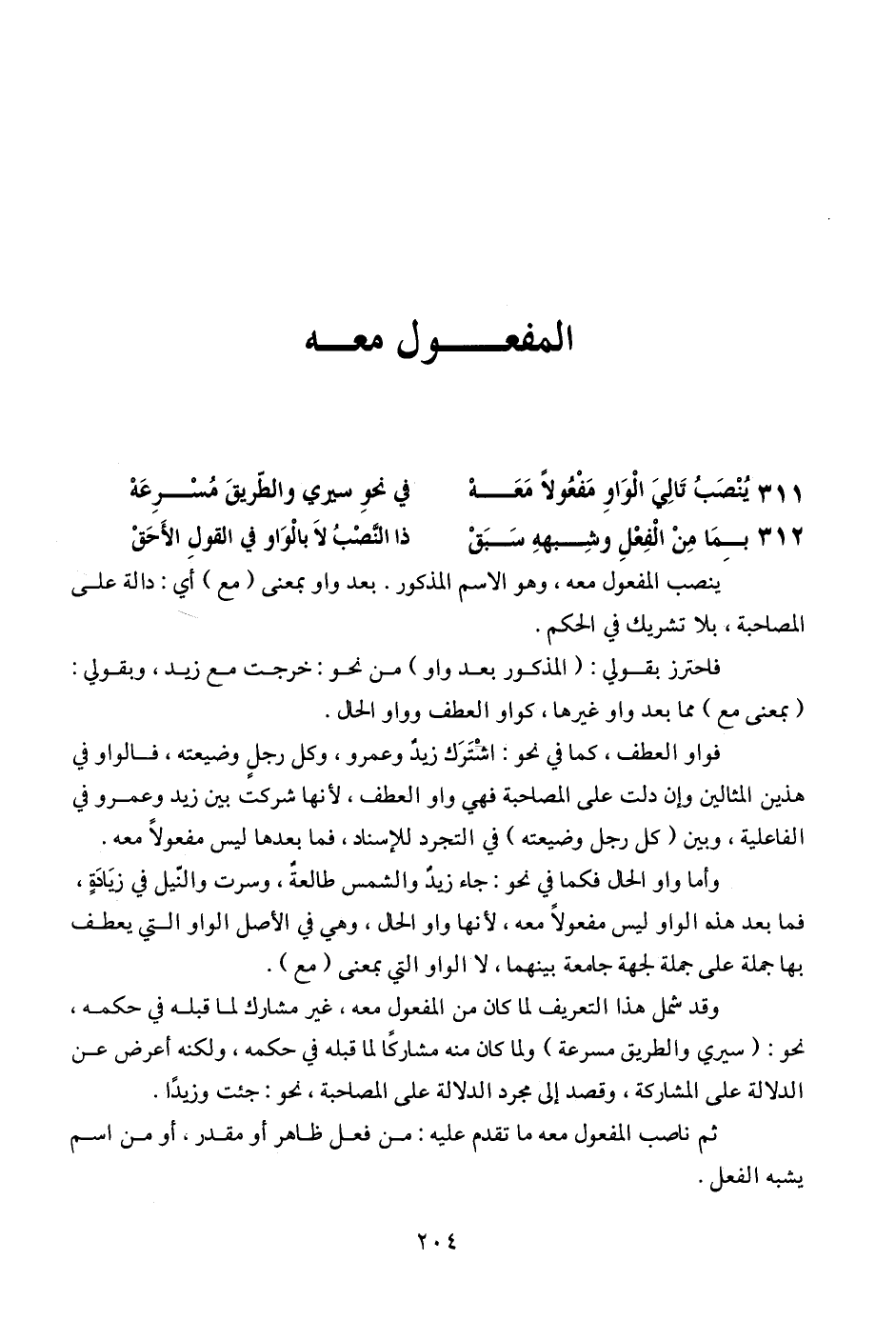311 - ينصب تالي الواو مفعولا معه ... في نحو سيري والطريق مسرعه
