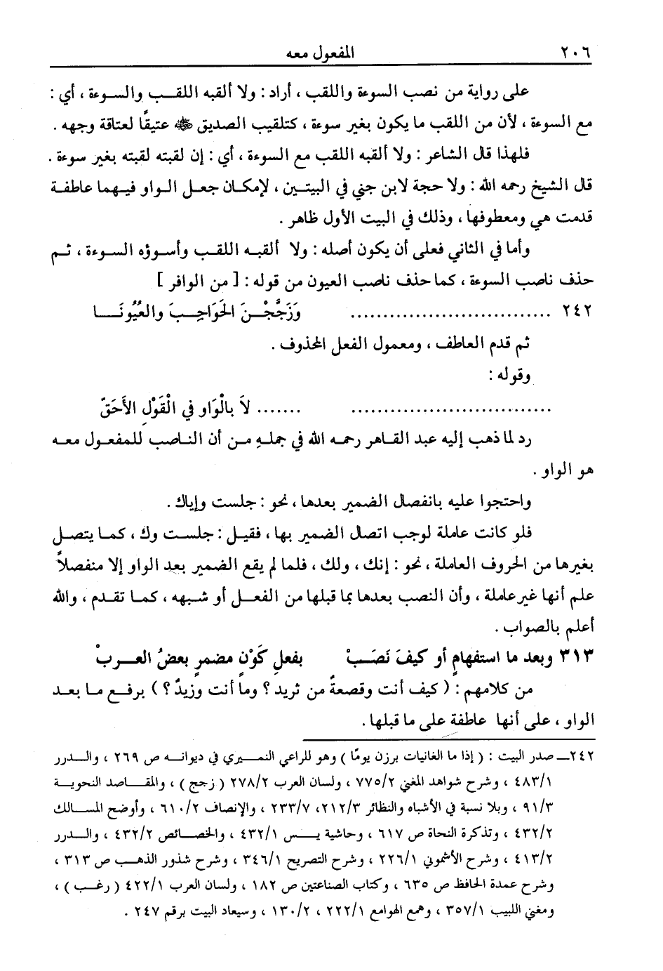 رد لما ذهب إليه عبد القاهر رحمه الله في جمله من أن الناصب للمفعول معه هو الواو.