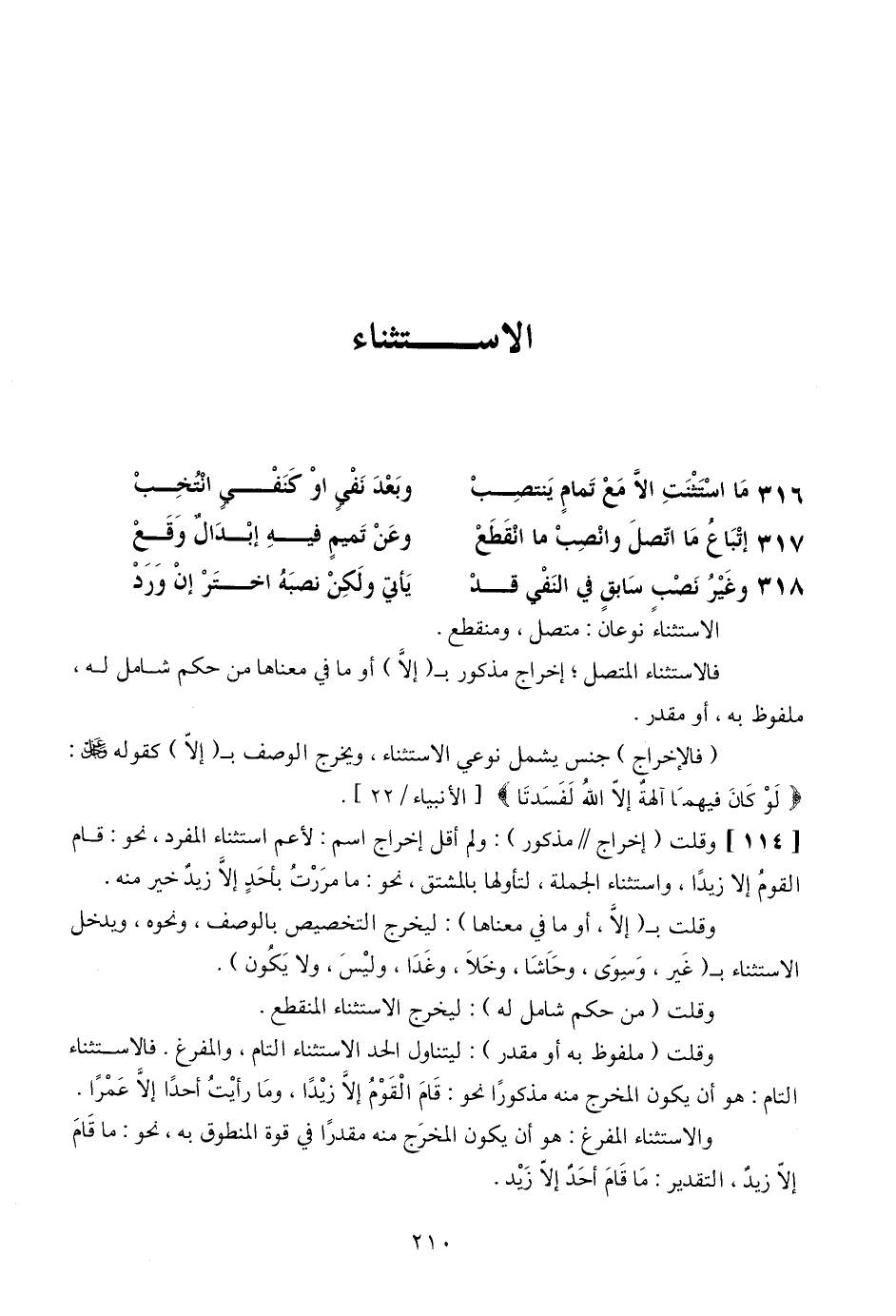 316 - ما استثنت إلا مع تمامٍ ينتصب ... وبعد نفيٍ أو كنفيٍ انتخب