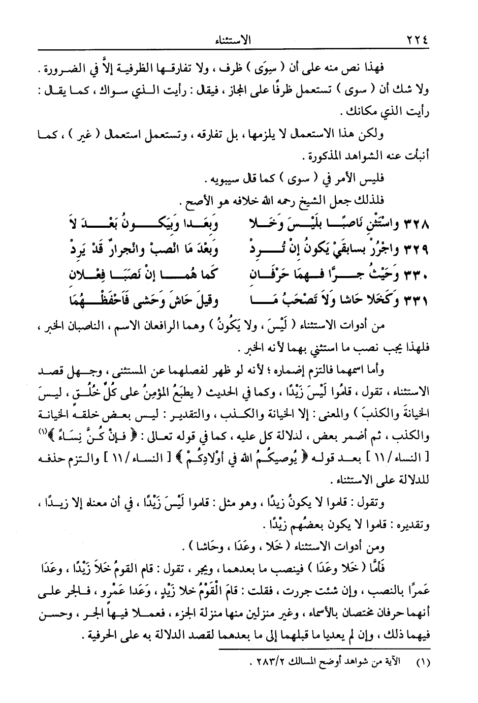 328 - واستثن ناصبًا بليس وخلا ... وبعدا وبيكون بعد لا