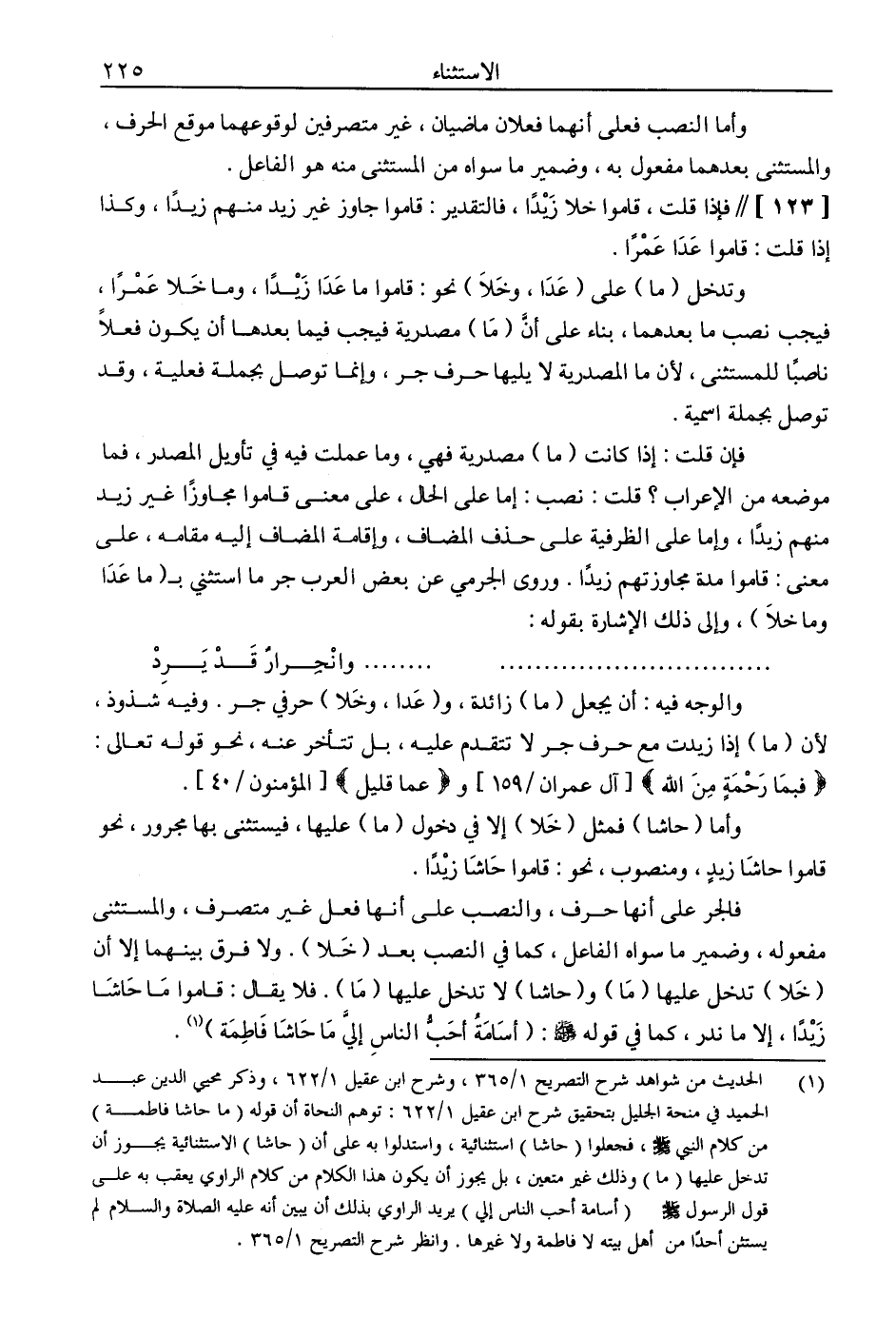 [123] // فإذا قلت، قاموا خلا زيدًا، فالتقدير: قاموا جاوز غير زيد منهم زيدًا، وكذا إذا قلت: قاموا عدا عمرًا.