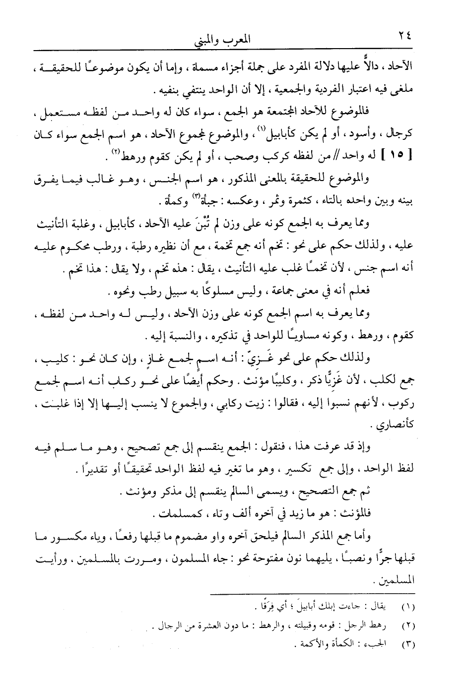 وإذ قد عرفت هذا، فنقول: الجمع ينقسم إلى جمع تصحيح، وهو ما سلم فيه لفظ الواحد، وإلى جميع تكسير، وهو ما تغير فيه لفظ الواحد تحقيقًا أو تقديرًا.