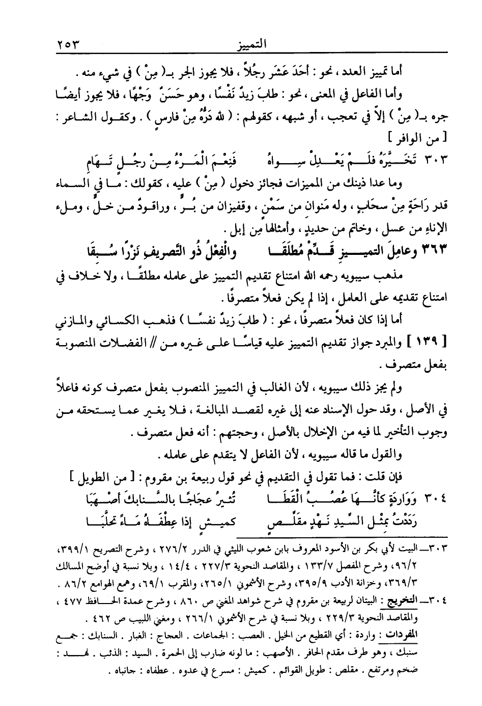 363 - وعامل التمييز قدم مطلقا ... والفعل ذو التصريف نزرًا سبقا