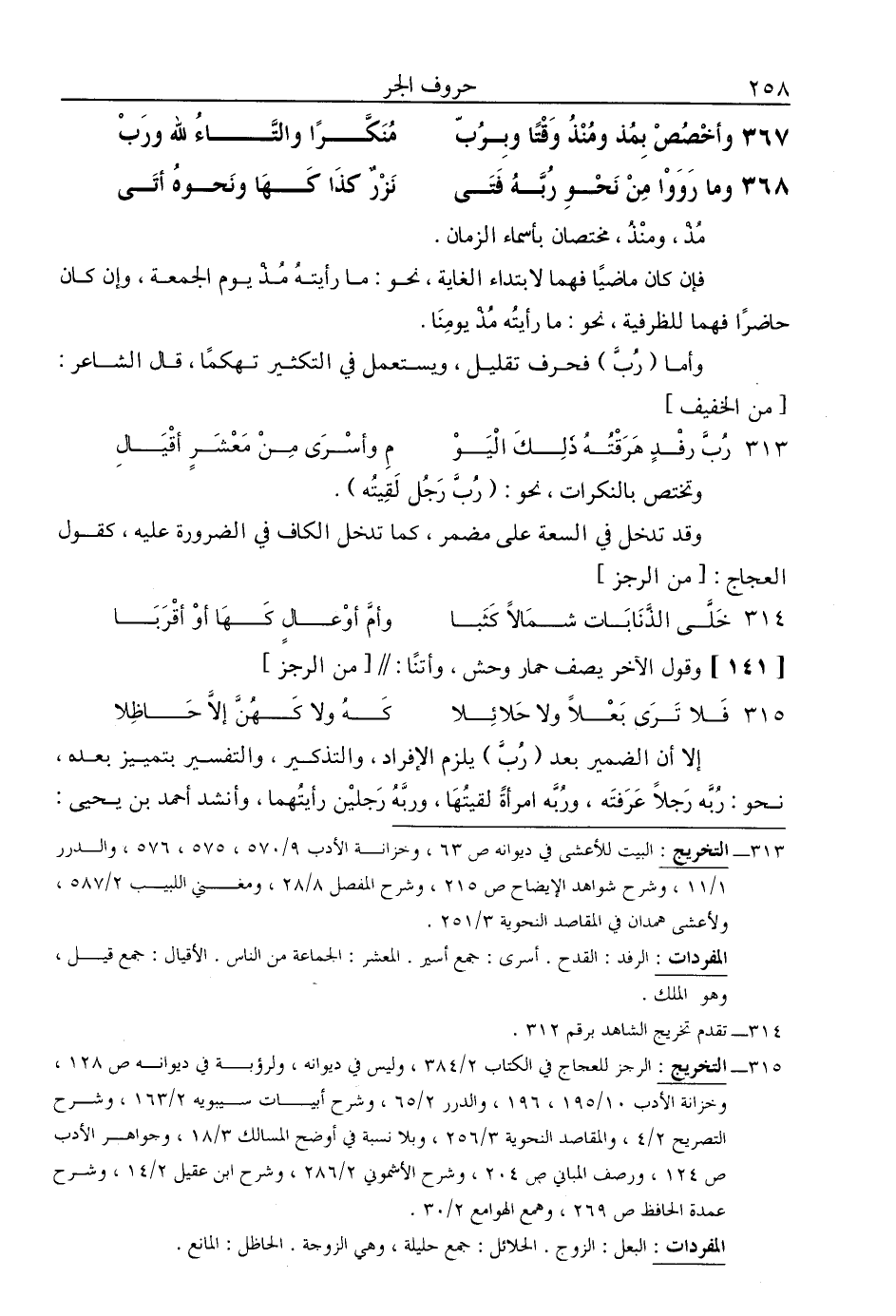 367 - وأخصص بمذ ومنذ وقتًا وبرب ... منكرًا والتاء لله ورب