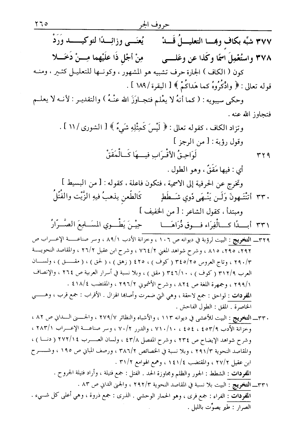 377 - شبه بكافٍ وبها التعليل قد ... يعني وزائدًا لتوكيد ورد