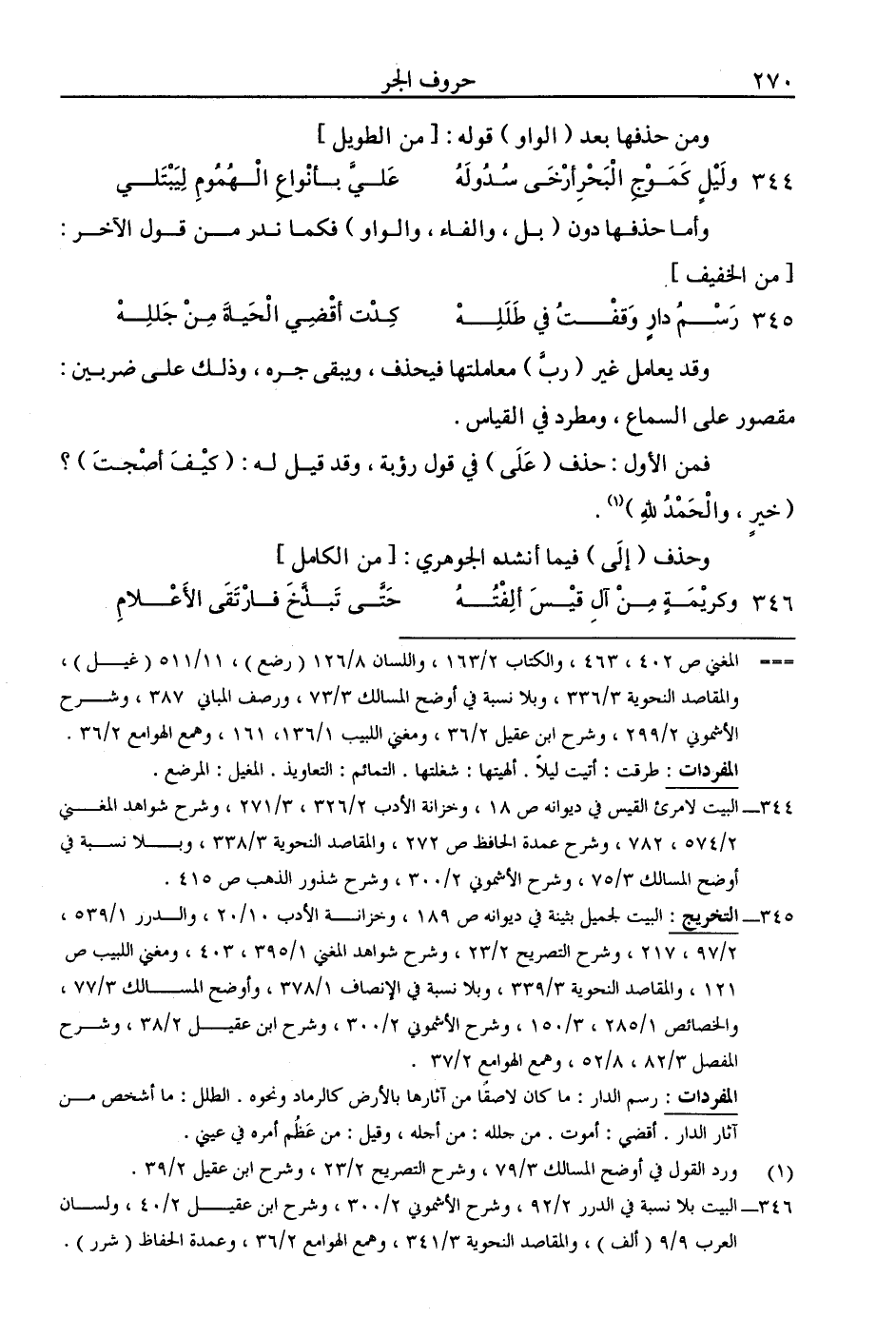 وقد يعامل غير (رب) معاملتها فيحذف، ويبقي جره، وذلك على ضربين: مقصور على السماع، ومطرد في القياس.