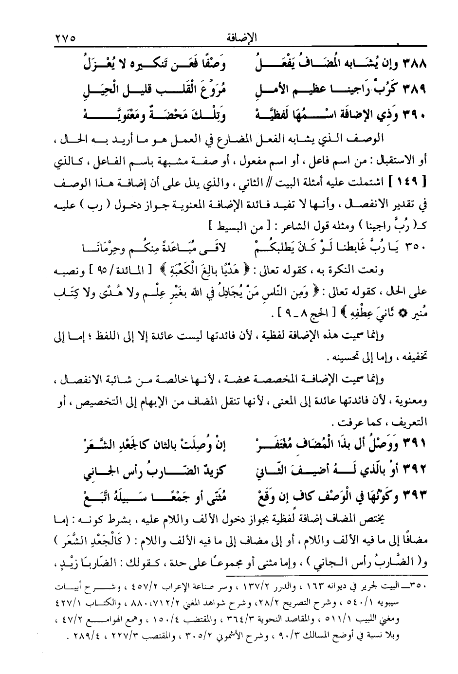 388 - وإن يشابه المضاف يفعل ... وصفًا فعن تنكيره لا يعزل