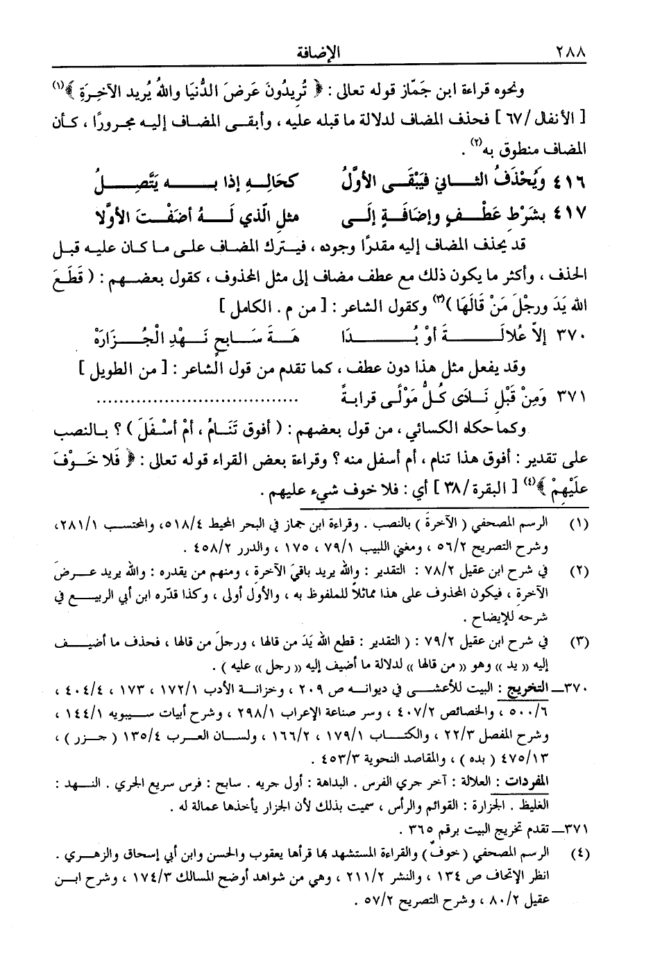 ونحوه قراءة ابن جماز قوله تعالى: (تريدون عرض الدنيا والله يريد الآخرة) [الانفال /67] فحذف المضاف لدلالة ما قبله عليه، وأبقى المضاف إليه مجرورًا، كأن المضاف منطوق به.