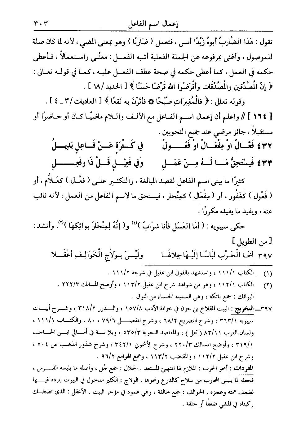 [164] // واعلم أن إعمال اسم الفاعل مع الألف واللام ماضيًا كان أو حاضرٍا أو مستقبلا، جائز مرضي عند جميع النحويين.