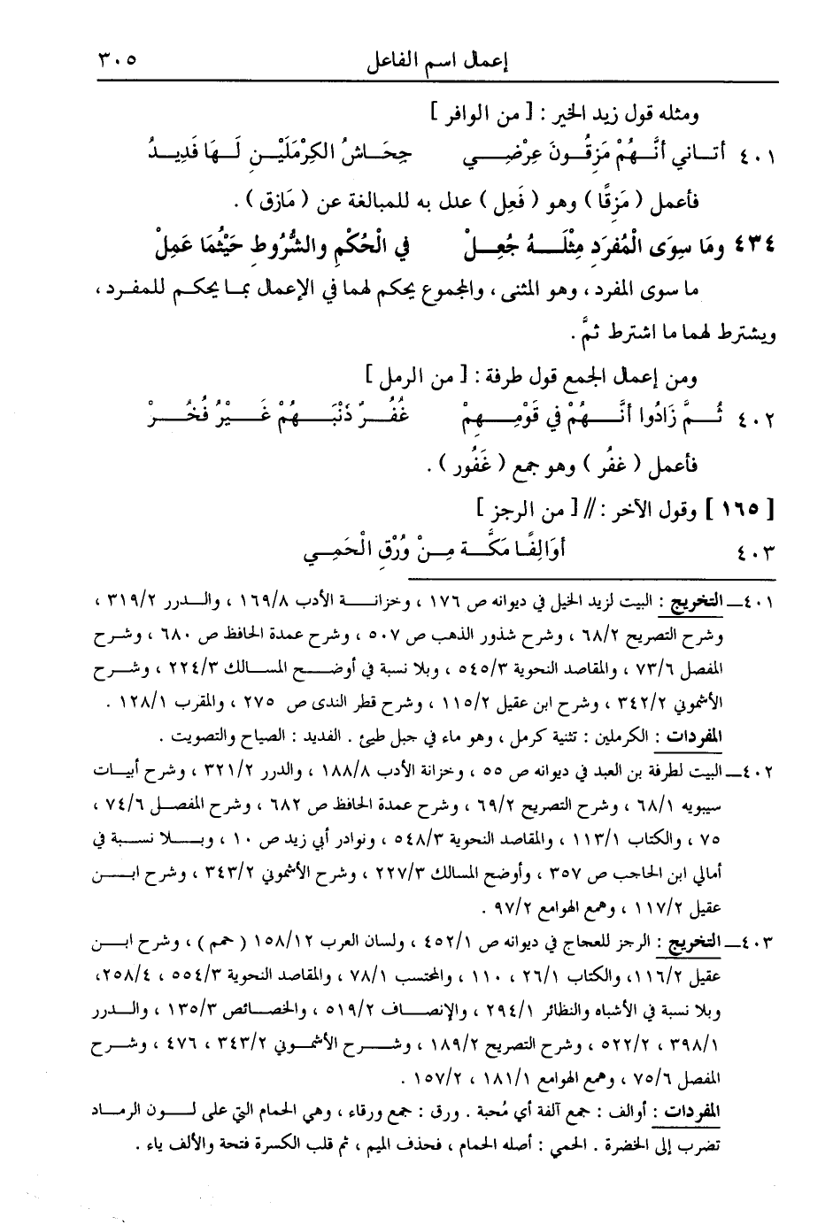 ومن إعمال الجمع قول طرفة: [من الرمل]