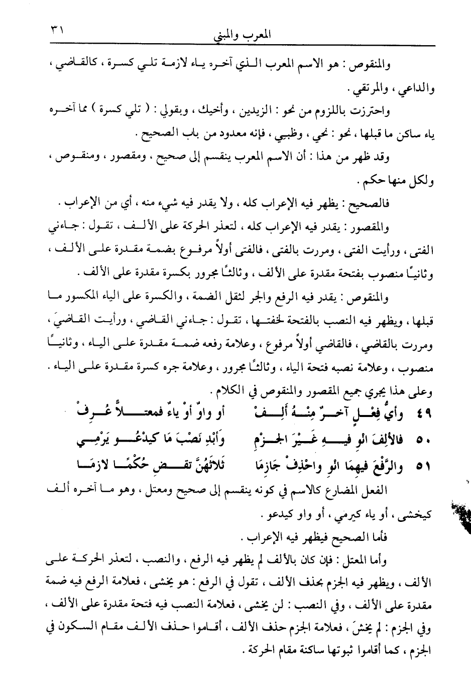 وقد ظهر من هذا: أن الاسم المعرب ينقسم إلى صحيح، ومقصور، ومنقوص، ولكل منها حكم.