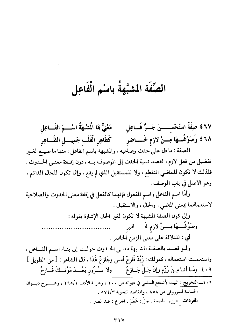467 - صفة استحسن جر فاعل ... معني بها المشبهة اسم الفاعل