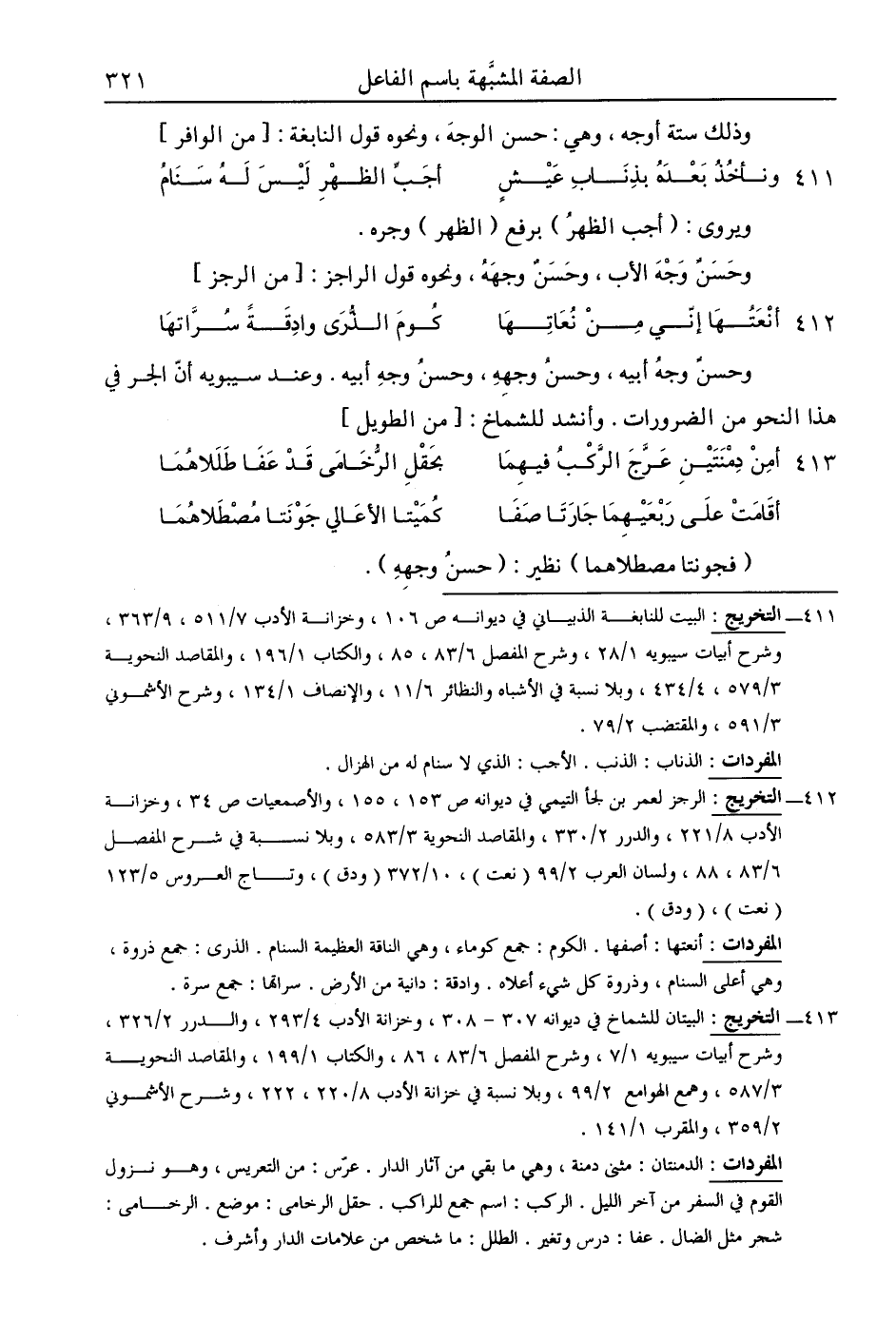 وحسن وجه أبيه، وحسن وجهه، وحسن وجه أبيه. وعند سيبويه أن الجر في هذا النحو من الضرورات. وأنشد للشماخ: [من الطويل]
