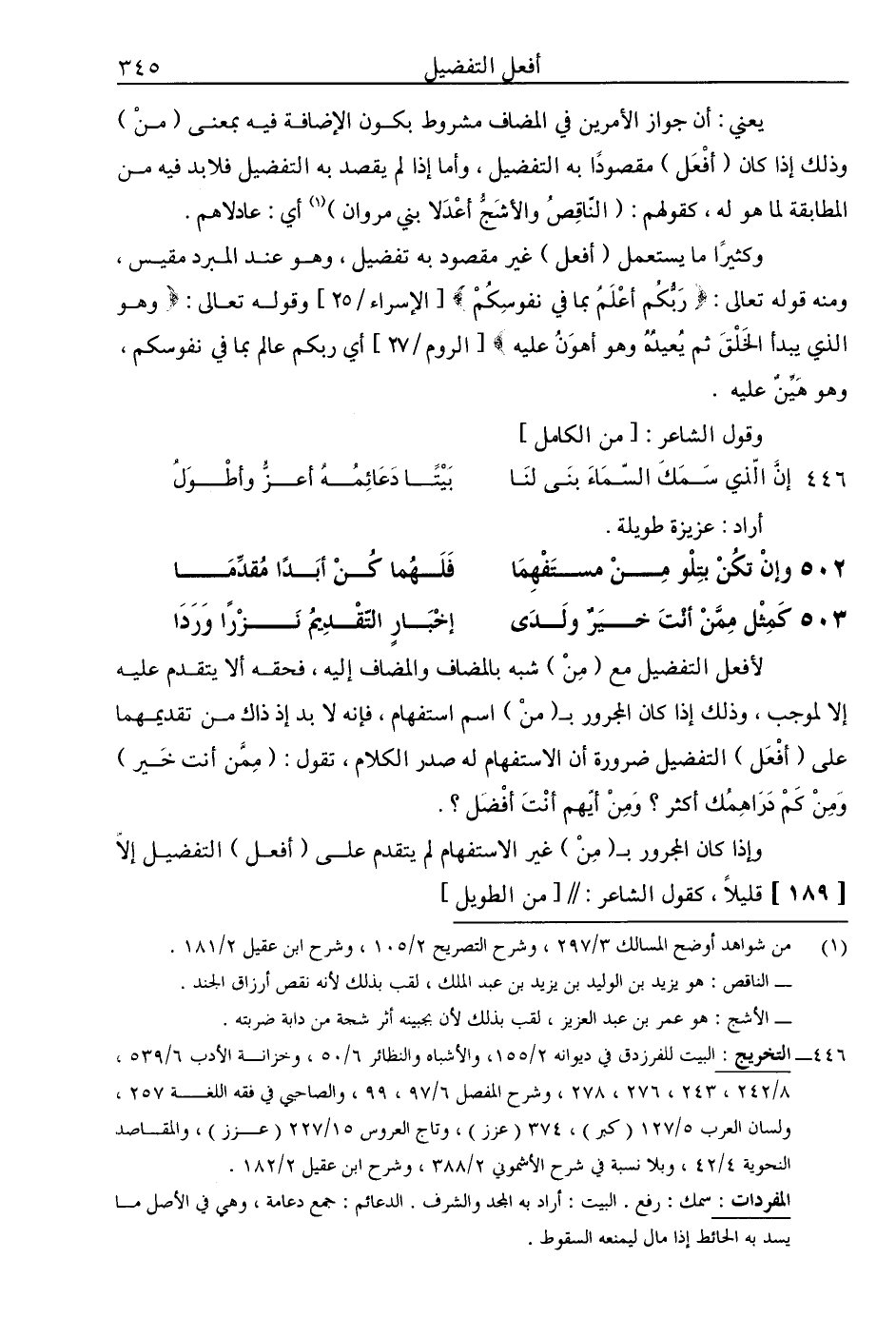 وإذا كان المجرور بـ (من) غير الاستفهام لم يتقدم على (أفعل) التفضيل إلا [189] قليلا، كقول الشاعر: // [من الطويل]