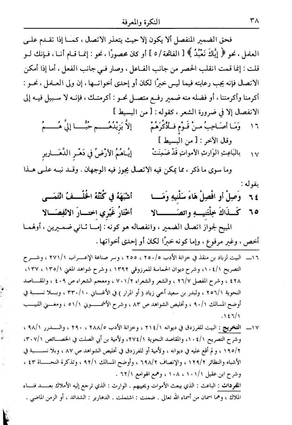 فحق الضمير المنفصل ألا يكون إلا حيث يتعذر الاتصال، كما إذا تقدم على العامل، نحو (إياك نعبد) [الفاتحة /5] أو كان محصورًا، نحو: إنما قام أنا، فإنك لو قلت: إنما قمت انقلب الحصر من جانب الفاعل، وصار في جانب الفعل، أما إذا أمكن الاتصال فإنه يجب رعايته فيما ليس خبرًا لكان أو إحدى أخواتها، إن ولى العامل، نحو: أكرمنا وأكرمتنا، أو فضله منه ضمير رفع متصل نحو: أكرمتك، فإنه لا سبيل فيه إلى الانفصال إلا في ضرورة الشعر، كقوله: [في البسيط]