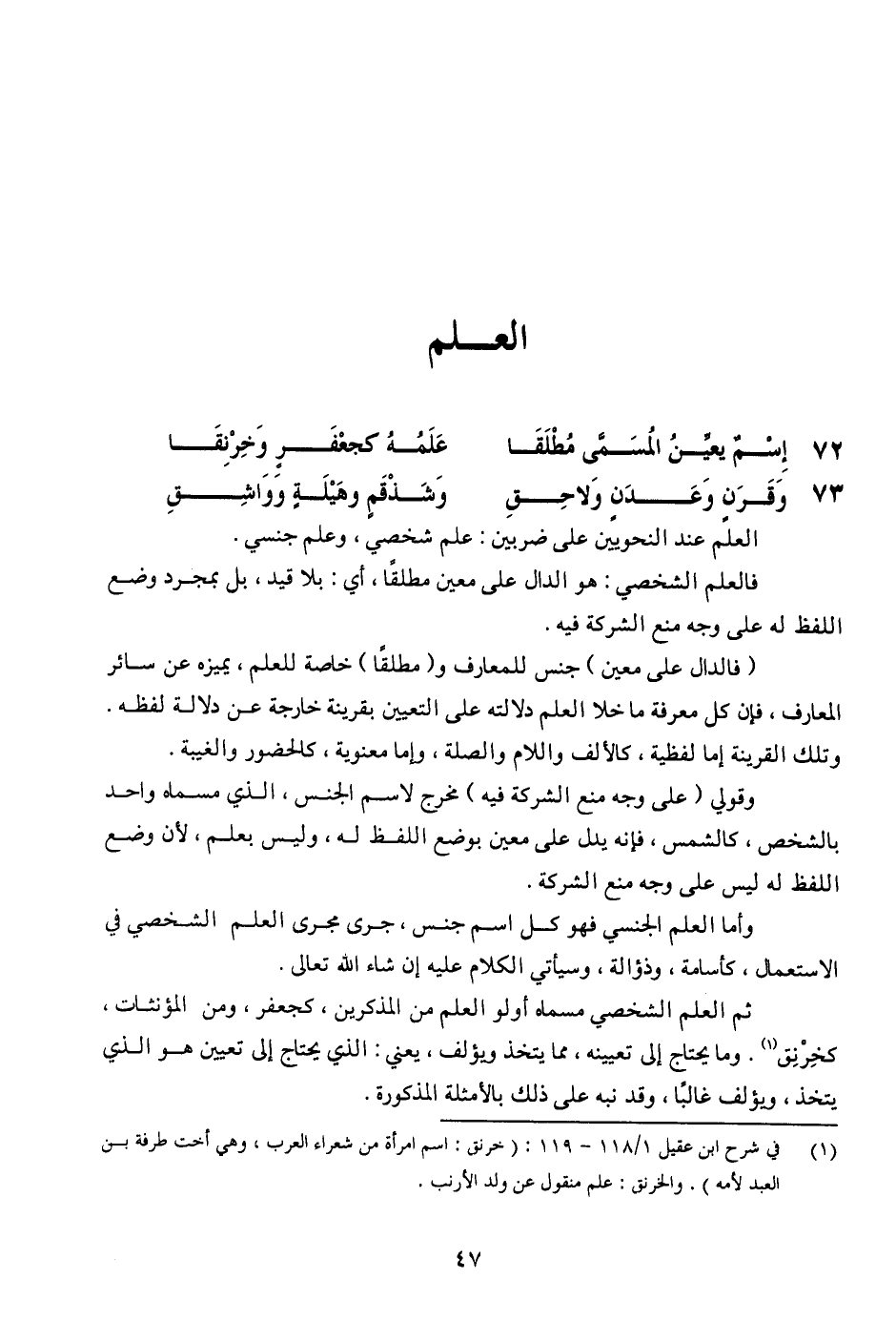 72 - اسم يعين المسمى مطلقا ... علمه كجعفرٍ وخرنقا