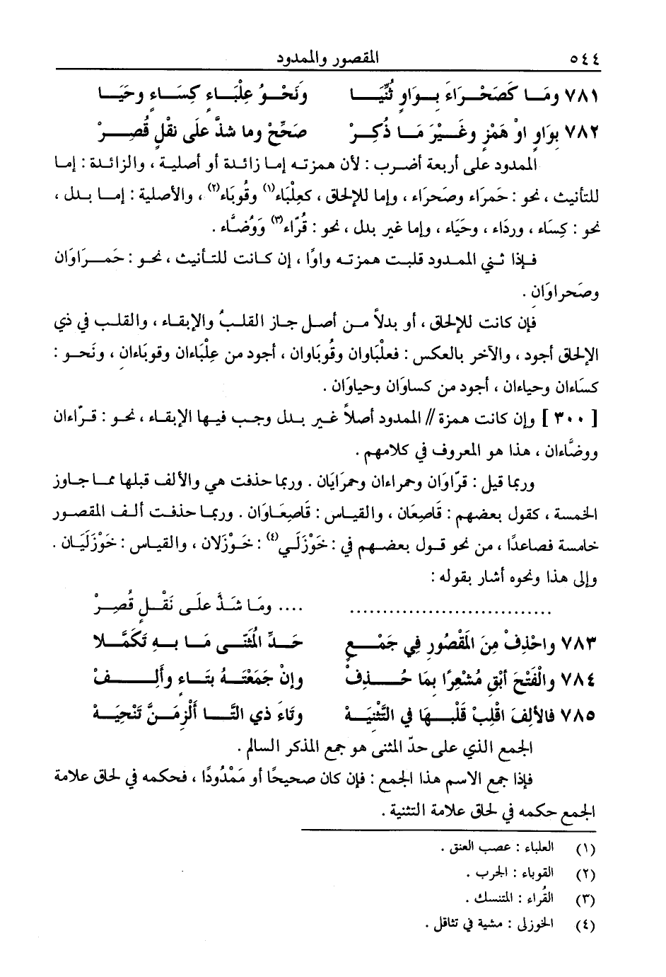 782 - بواو او همز وغير ما ذكر .... صحح وما شذ على نقل قصر