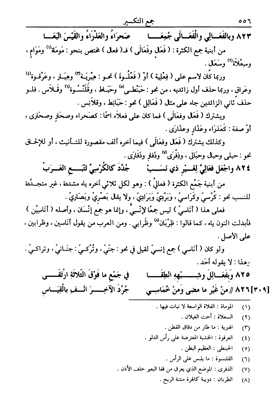 وبالفعالي والفعالى جمعا .... صحراء والعذراء والقيس اتبعا