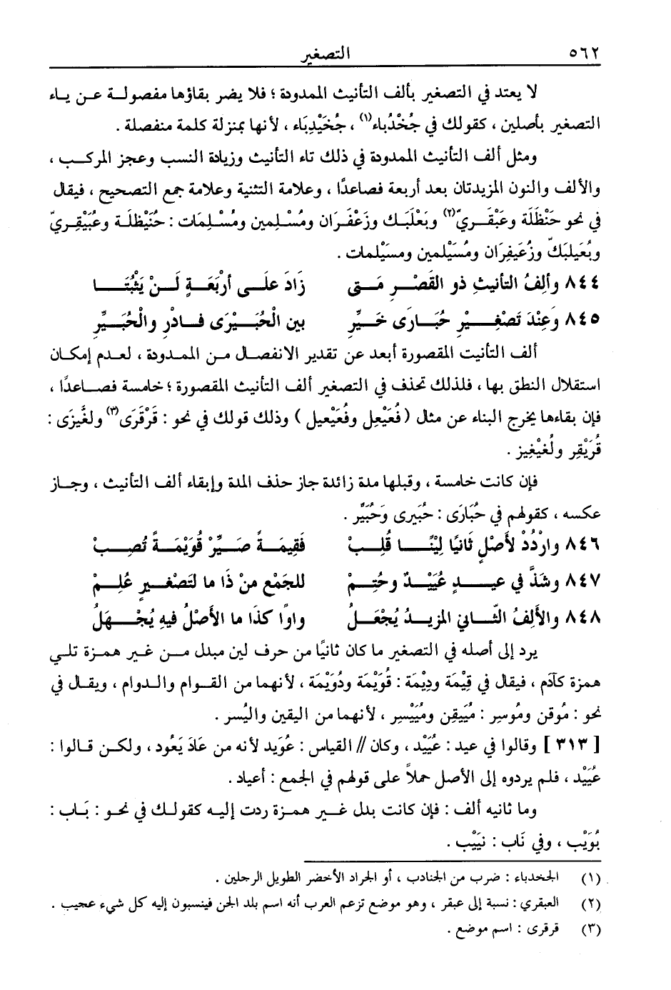 لا يعتد في التصغير بألف التأنيث الممدودة، فلا يضر بقاؤها مفصولة عن ياء التصغير بأصلين، كقولك في جخدباء، جخيدباء، لأنها بمنزلة كلمة منفصلة.