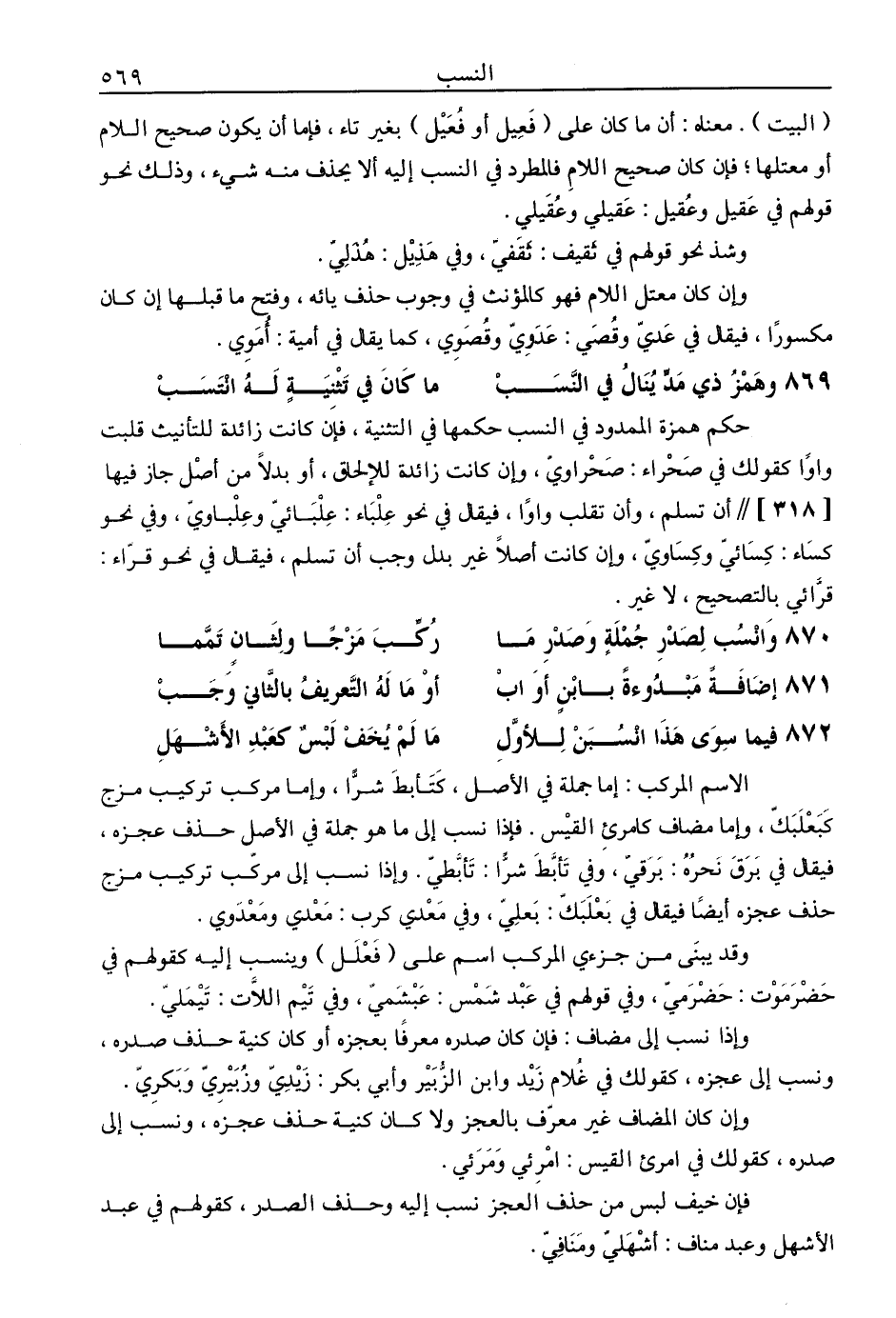 870 - وانسب لصدر جملة وصدر ما .... ركب مزجا ولثان تمما