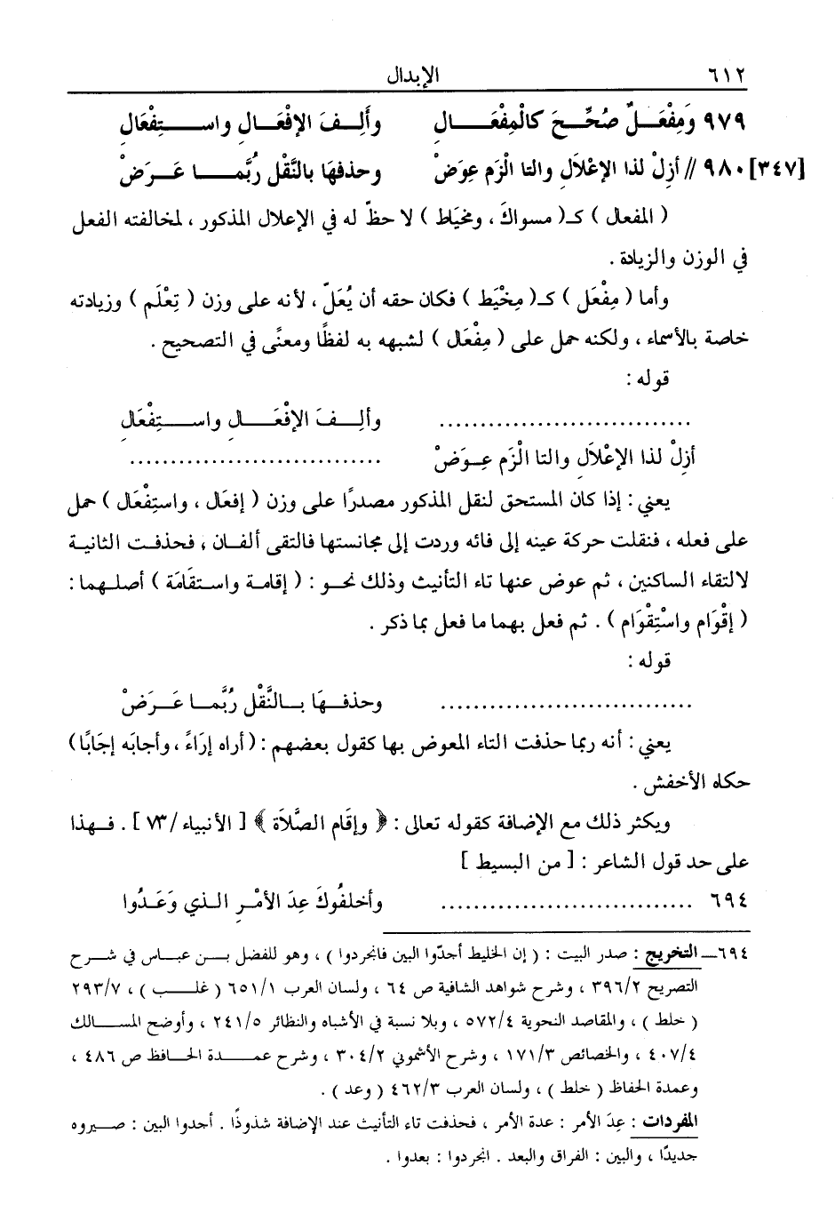 979 - ومفعل صحح كالمفعال .... وألف الإفعال واستفعال [347] //