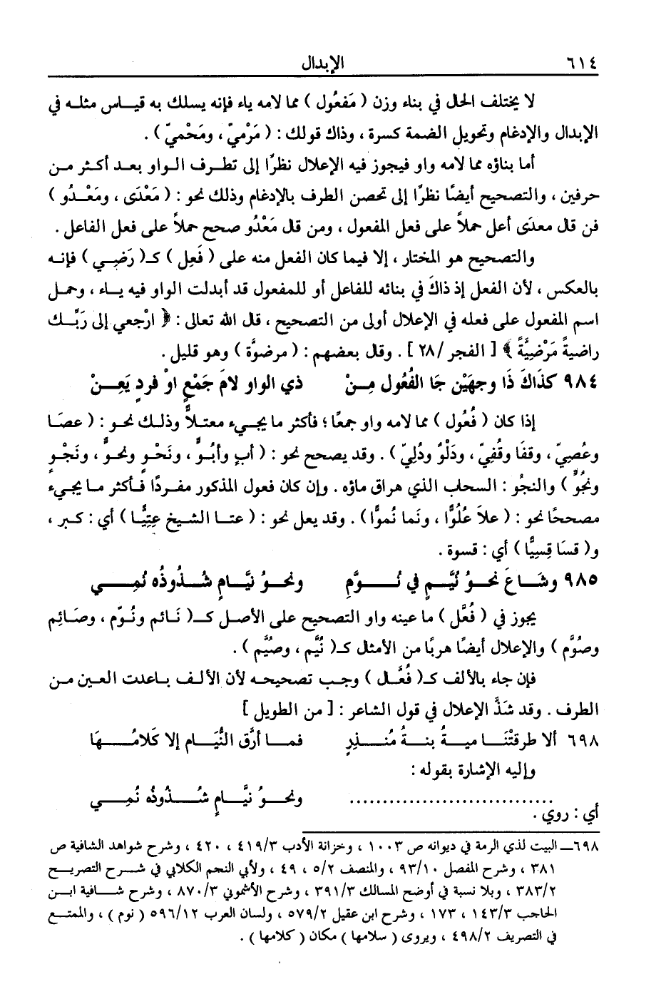 984 - كذاك ذا وجهين جا الفعول من .... ذي الواو لام جمعٍ أو فردٍ يعن