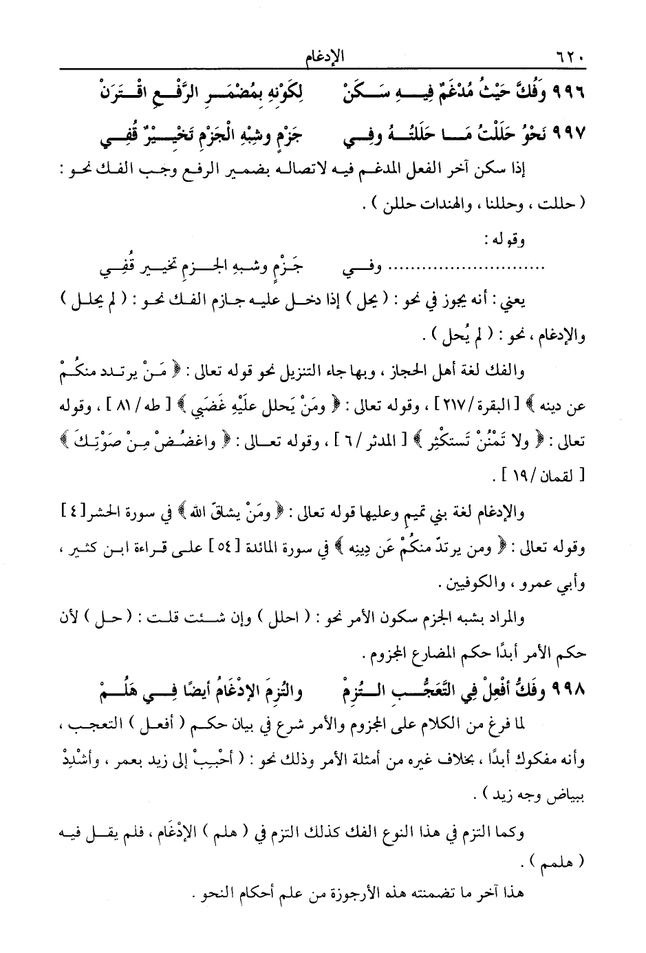 996 - وفك حيث مدغم فيه سكن .... لكونه بمضمر الرفع اقترن