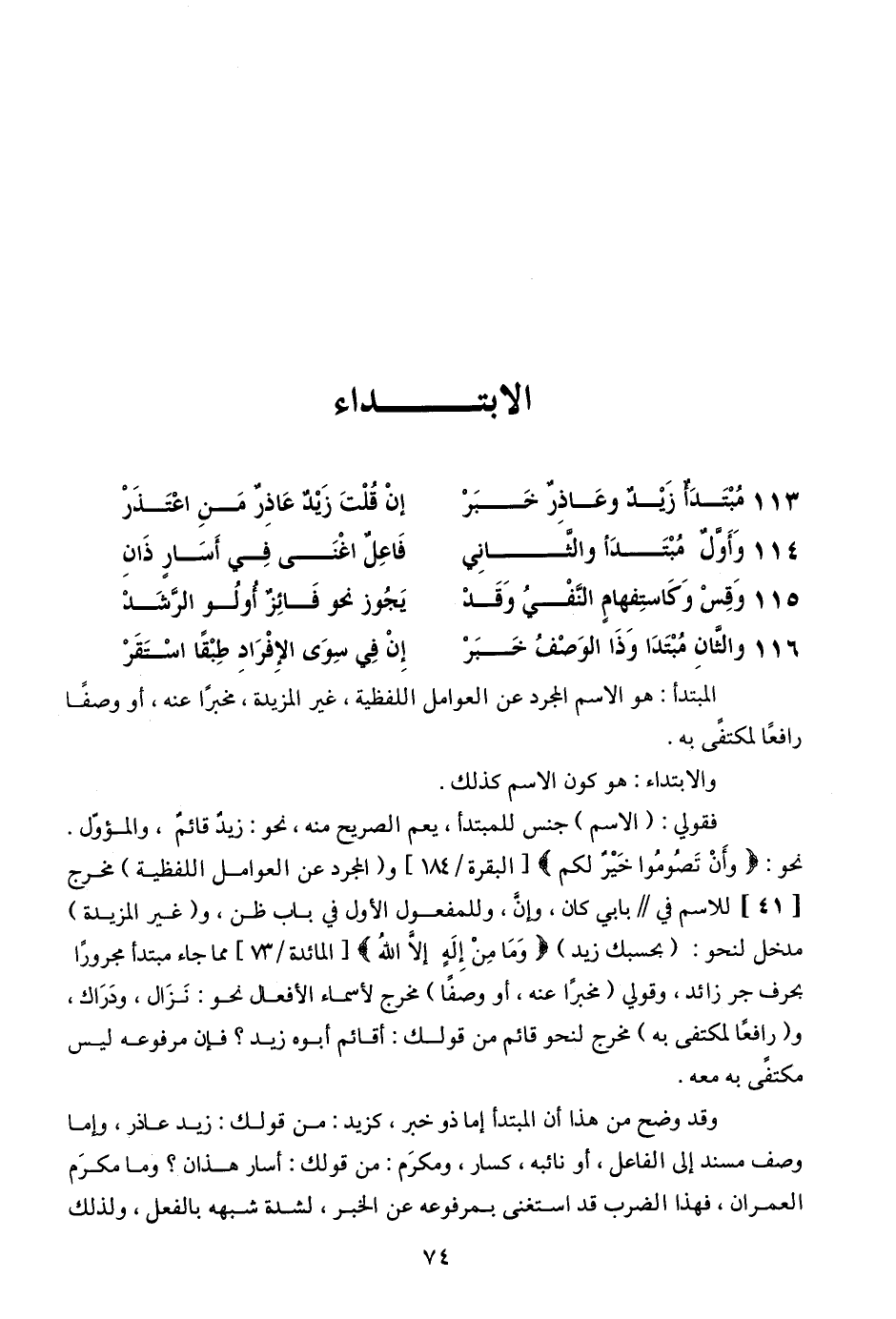 113 - مبتدأ زيد وعاذر خبر ... إن قلت زيد عاذر من اعتذر