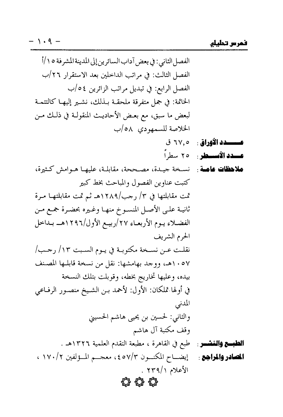 الفصل الثا ني: في بعض ا داب السا ئرين إلى المدينة المشرفة 5 1 / أ