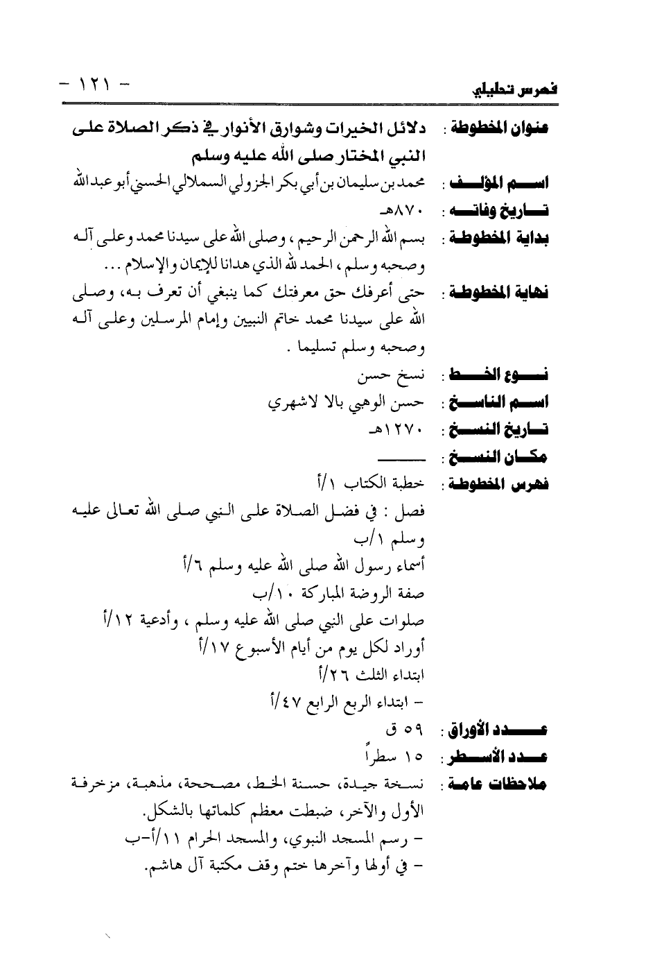عنوان المخطوطة: دلائل الخيرات وشوارق الائوارفي ذحرا لصلاة على