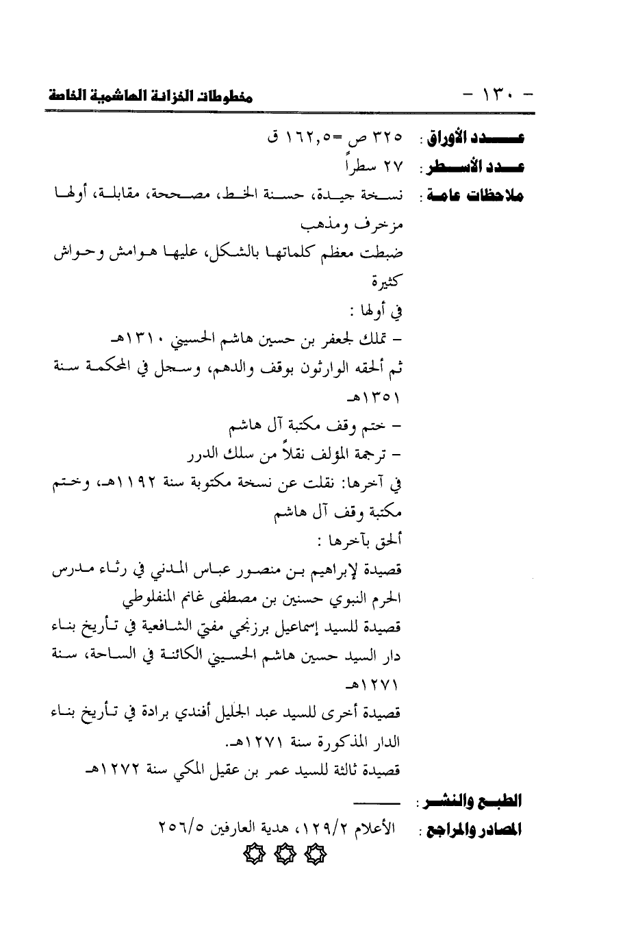 كتاب مخطوطات الخزانة الهاشمية الخاصة فهرس تحليلي (اسم الجزء: 1)
