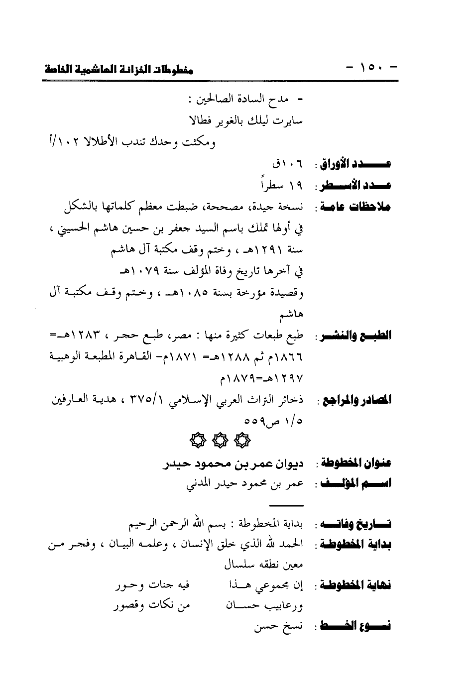 كتاب مخطوطات الخزانة الهاشمية الخاصة فهرس تحليلي (اسم الجزء: 1)