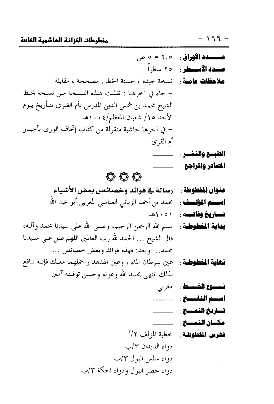 اسم المؤلف: محد بن أحمد الزيايخا العياشي المغركا ابو عبد الله