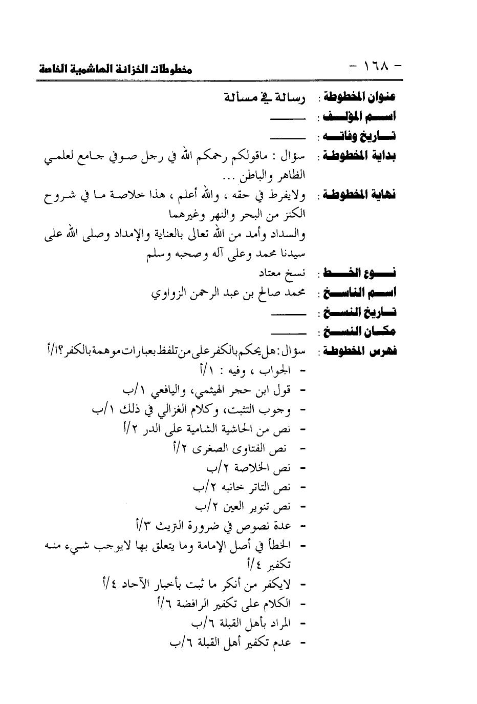كتاب مخطوطات الخزانة الهاشمية الخاصة فهرس تحليلي (اسم الجزء: 1)