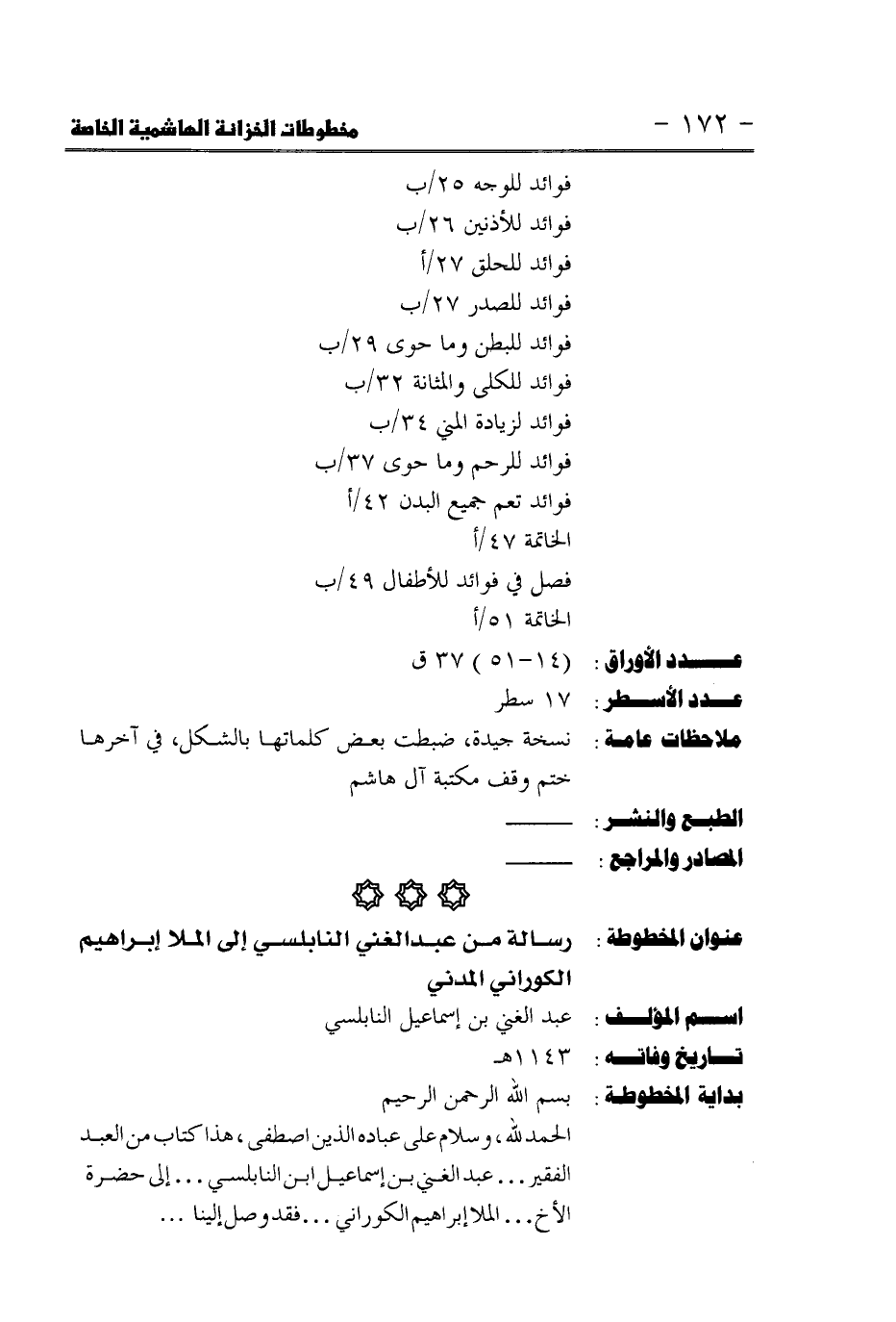 رسالة من عبدالغني النابلسي إلى الملا إبراهي! ا