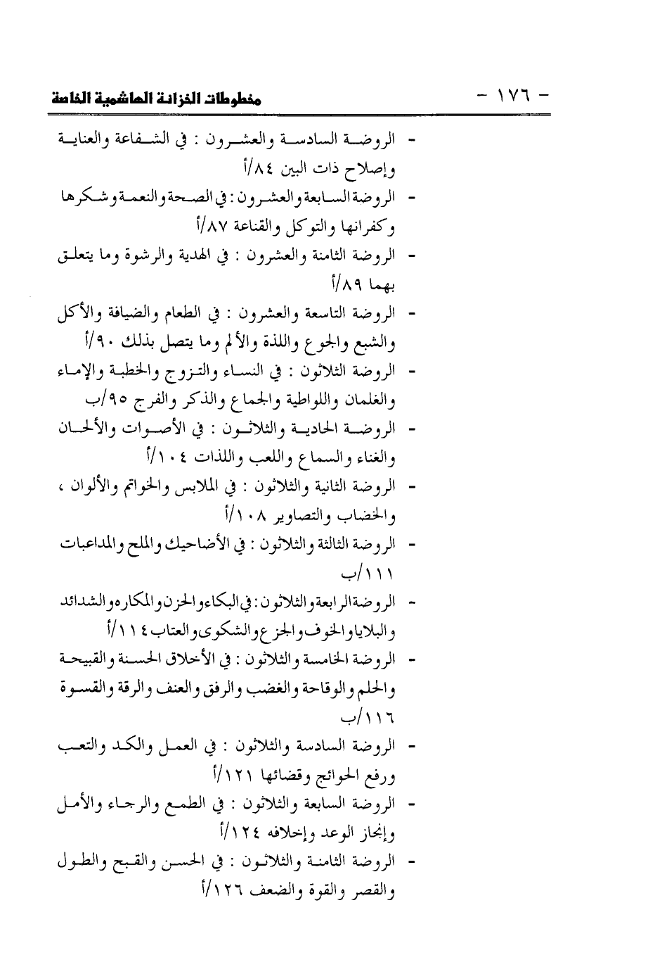 - الروضة الثالثة والثلاثون: فى الأضاحيك والملح والمداعبات