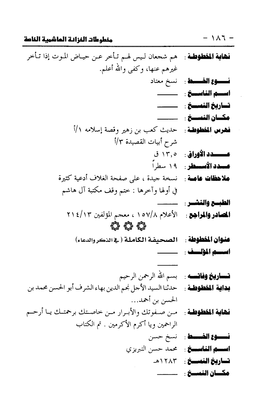 كتاب مخطوطات الخزانة الهاشمية الخاصة فهرس تحليلي (اسم الجزء: 1)