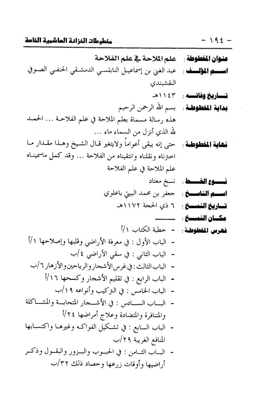 - الباب الاول: في معرفة الاراضي وقلبها وإصلاحها h / أ