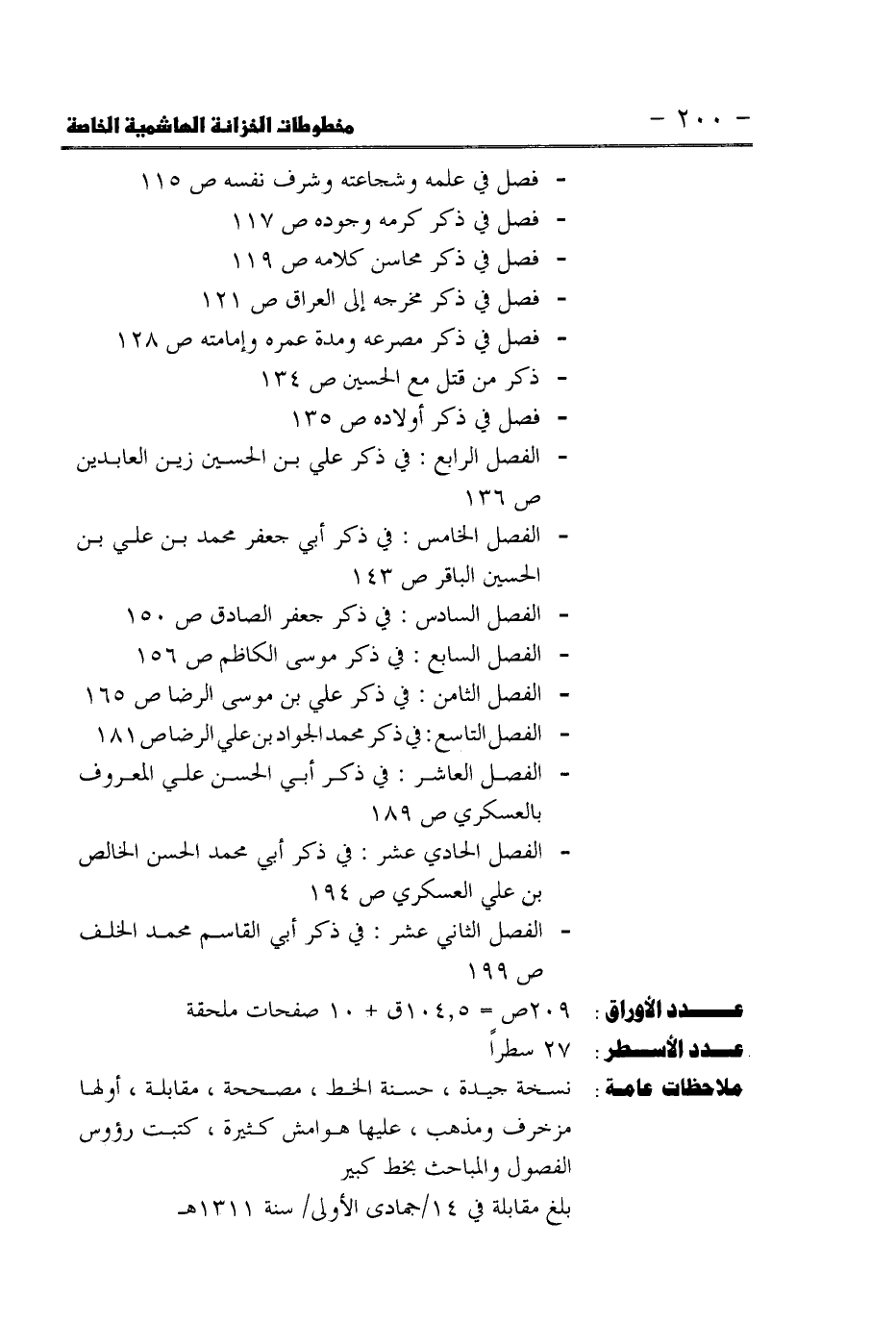 - الفصل السابع: فى ذكر موسى الكاظم ص 156