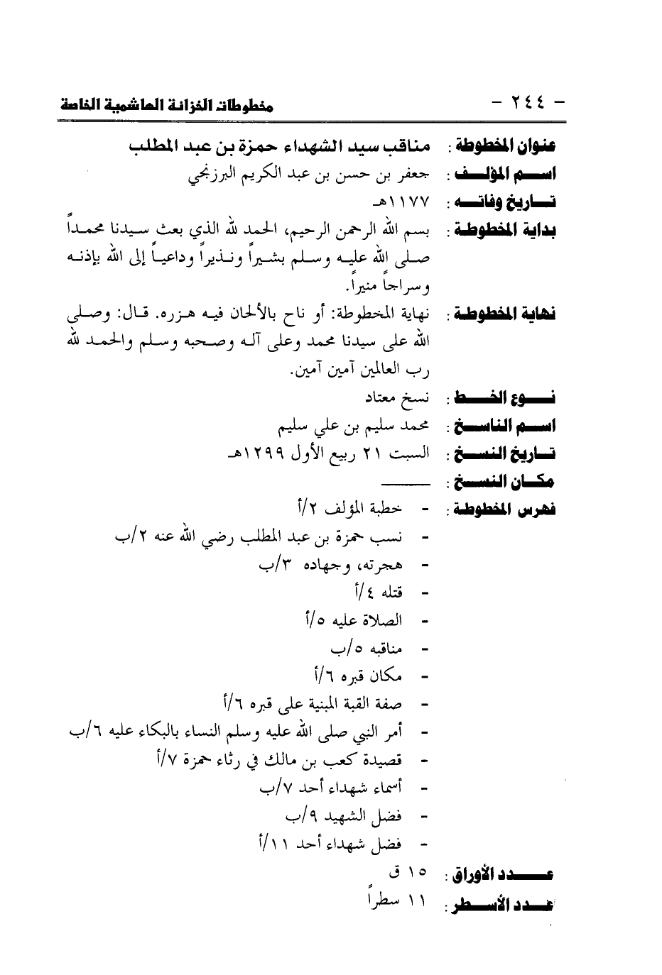 كتاب مخطوطات الخزانة الهاشمية الخاصة فهرس تحليلي (اسم الجزء: 1)