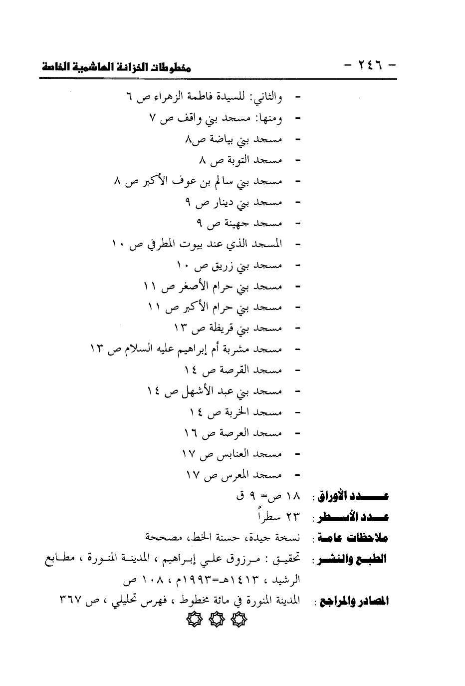 المدينة المنورة في مائة مخطوصا، فهرس تحليلي، ص riv