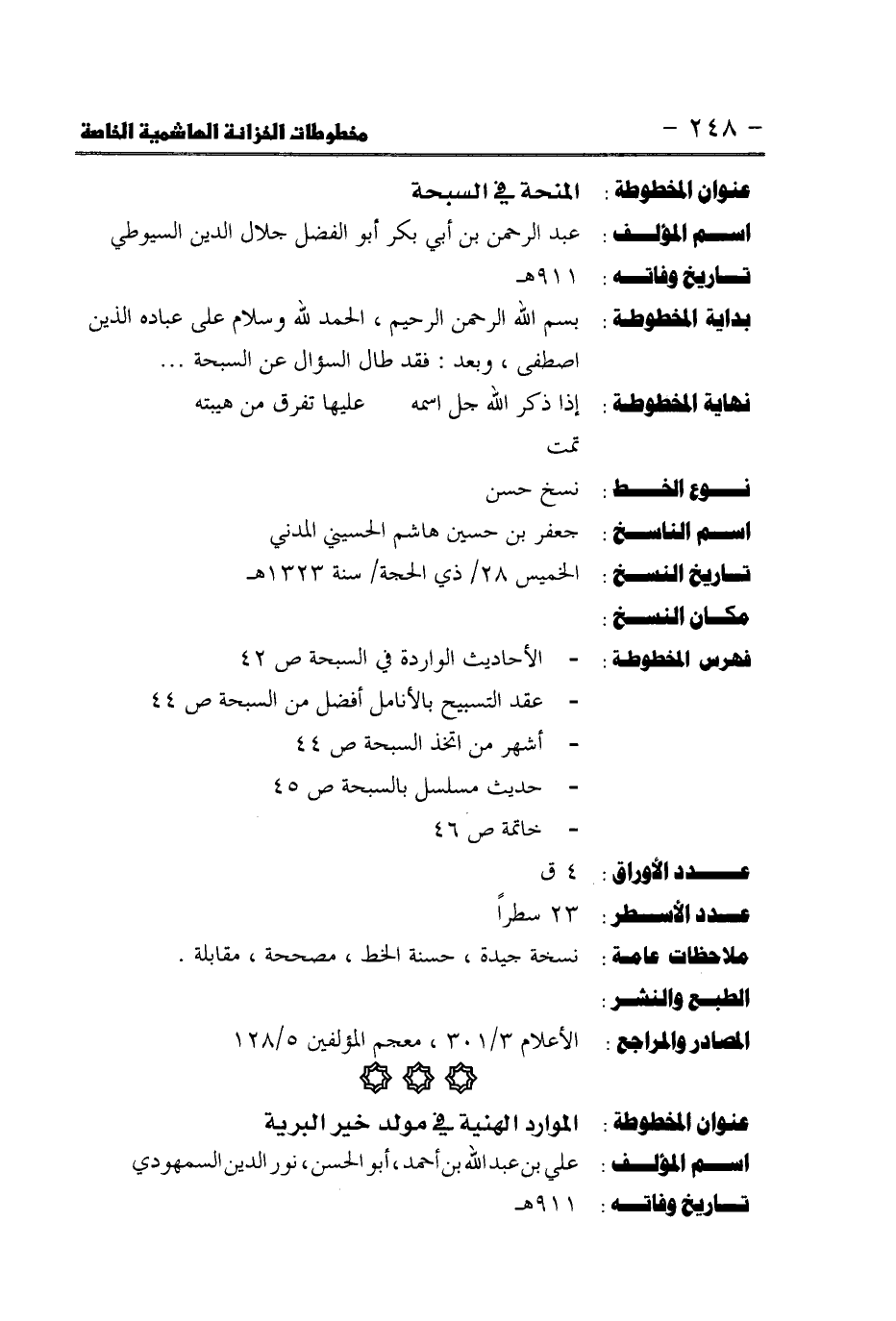 كتاب مخطوطات الخزانة الهاشمية الخاصة فهرس تحليلي (اسم الجزء: 1)