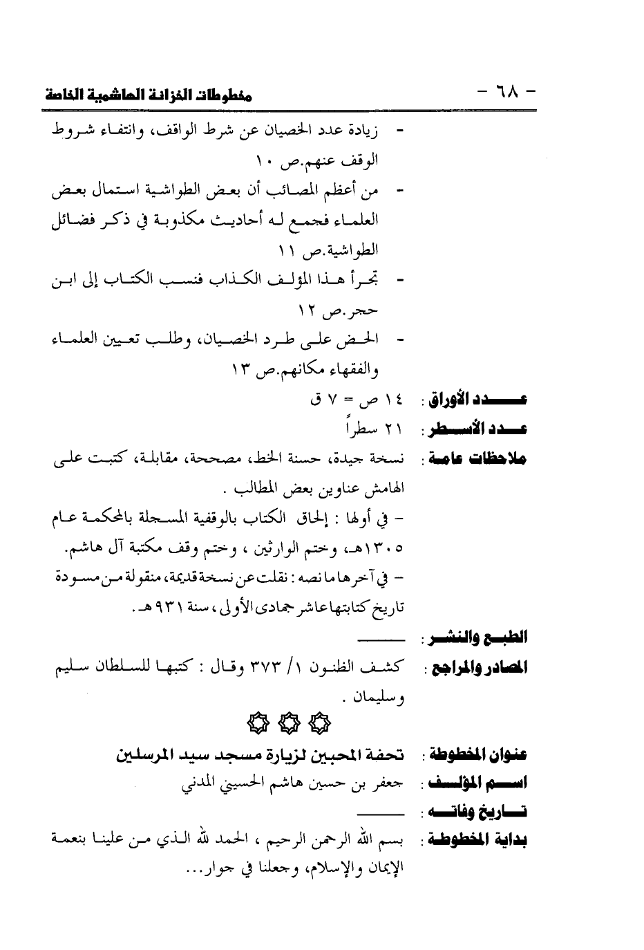 - في اولها: الحاق الكتاب بالوقفية المسجلة بالمحكمة عام