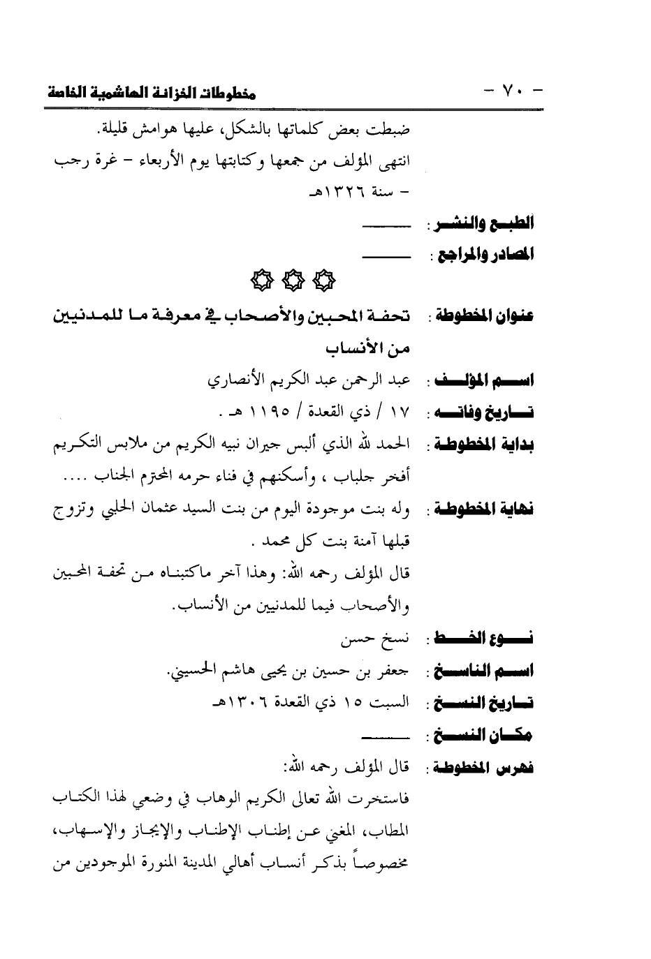 مخصوصا بذكر أنساب أهالي المدينة المنورة الموجودين من