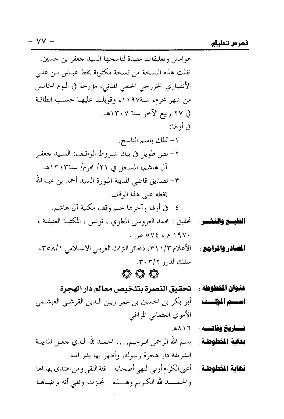 تحقيق: محمد العروسي المطوي، تونس، المكتبة العتيقة،