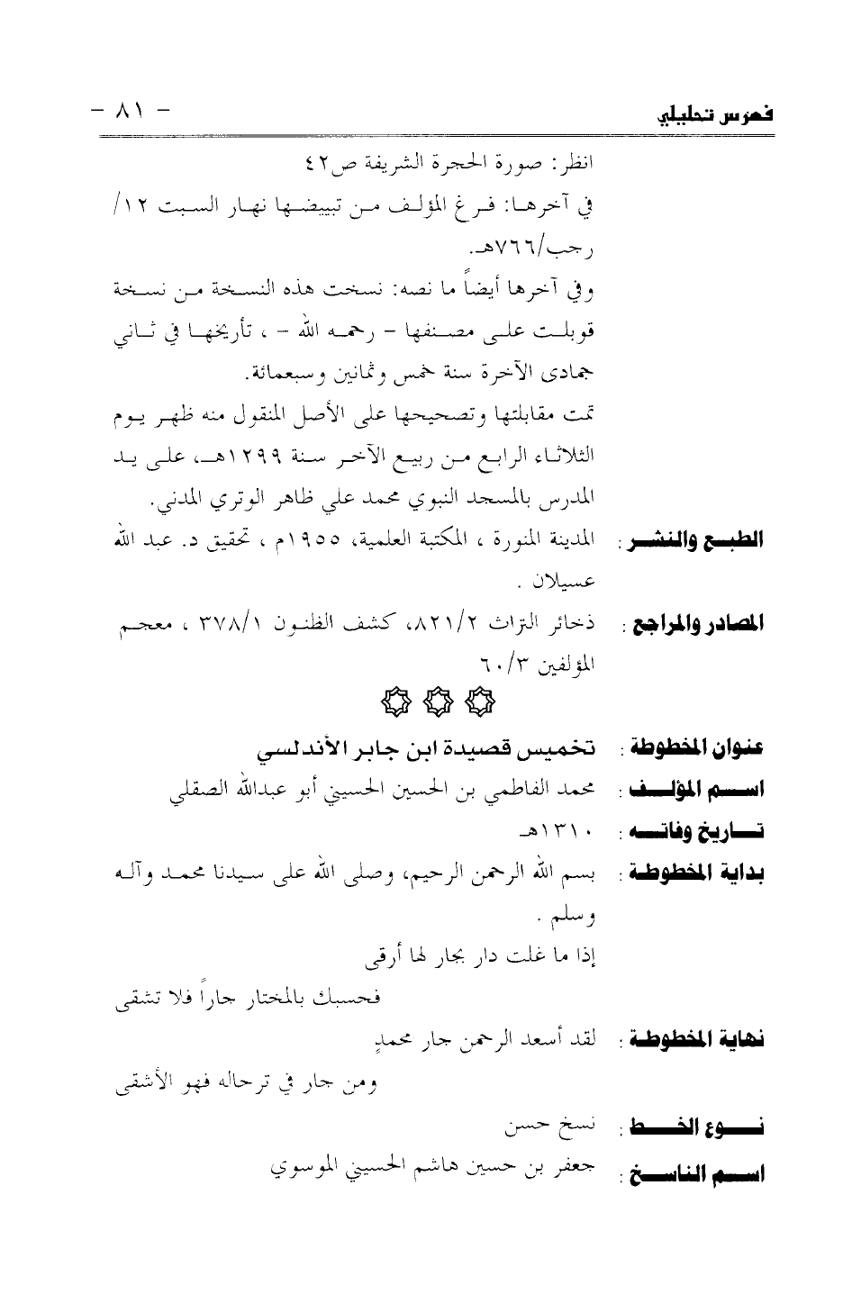 تخميس قصيدة ابن جابر الاندلسي