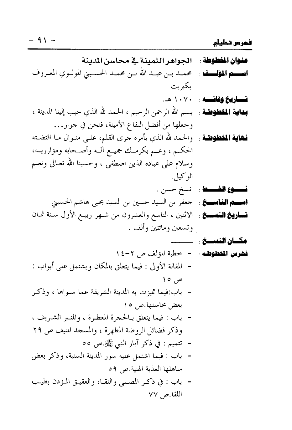 عنوان المخطوطة: الجواهر الثمينة في محاسن المدينة